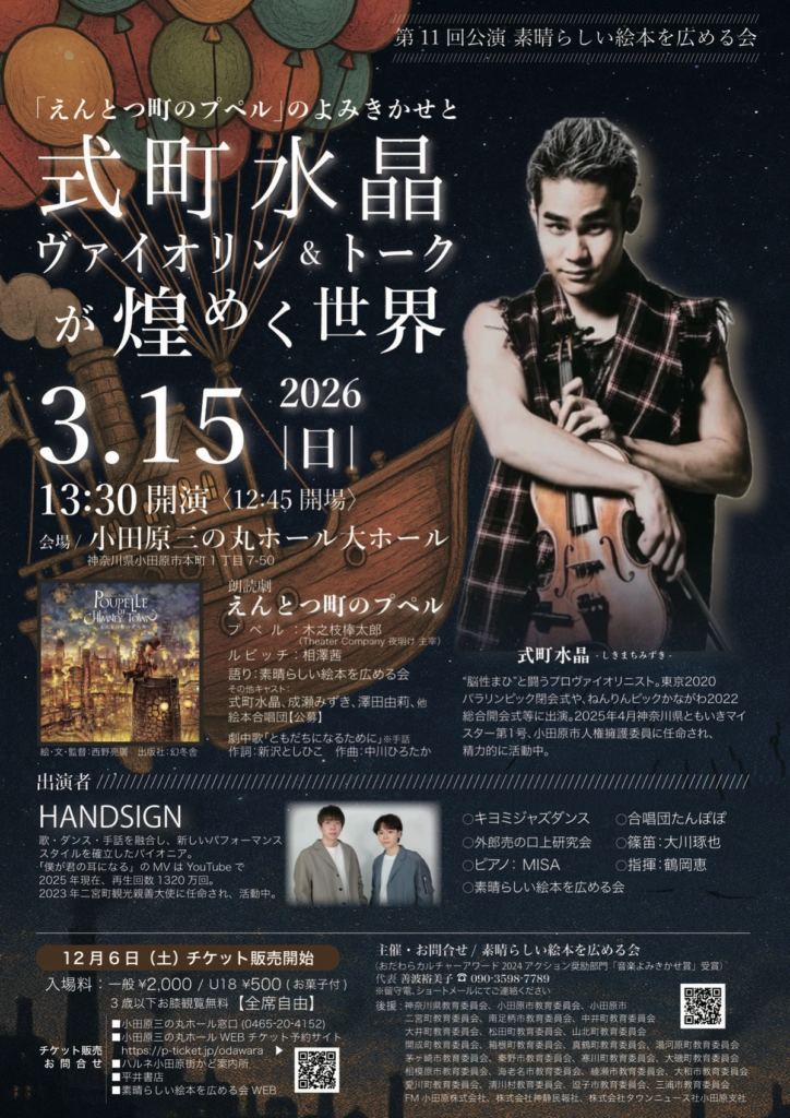 「えんとつの町プペル」のよみきかせと式町水晶ヴァイオリン&トークが煌めく世界に、研究会メンバーが出演します
